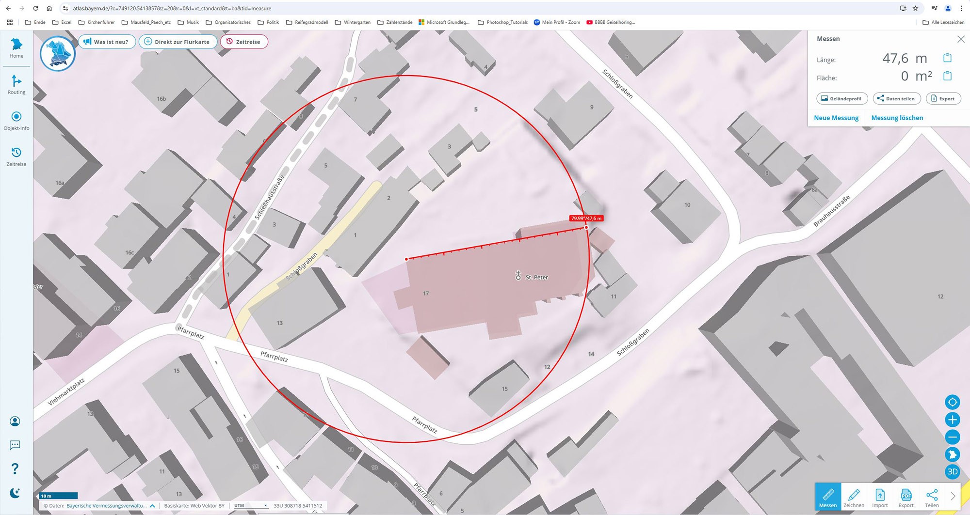- Durch eine Winkelmessung mit dem Bayernatlas (Wert ca. 10,0 Grad). [Bild 3]