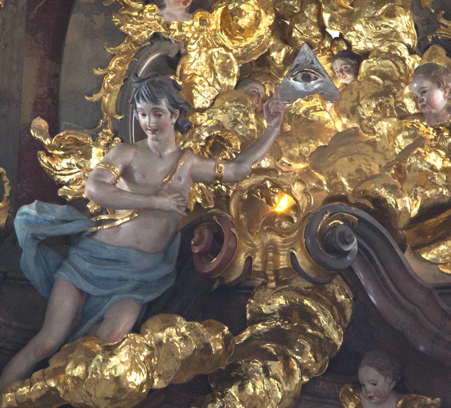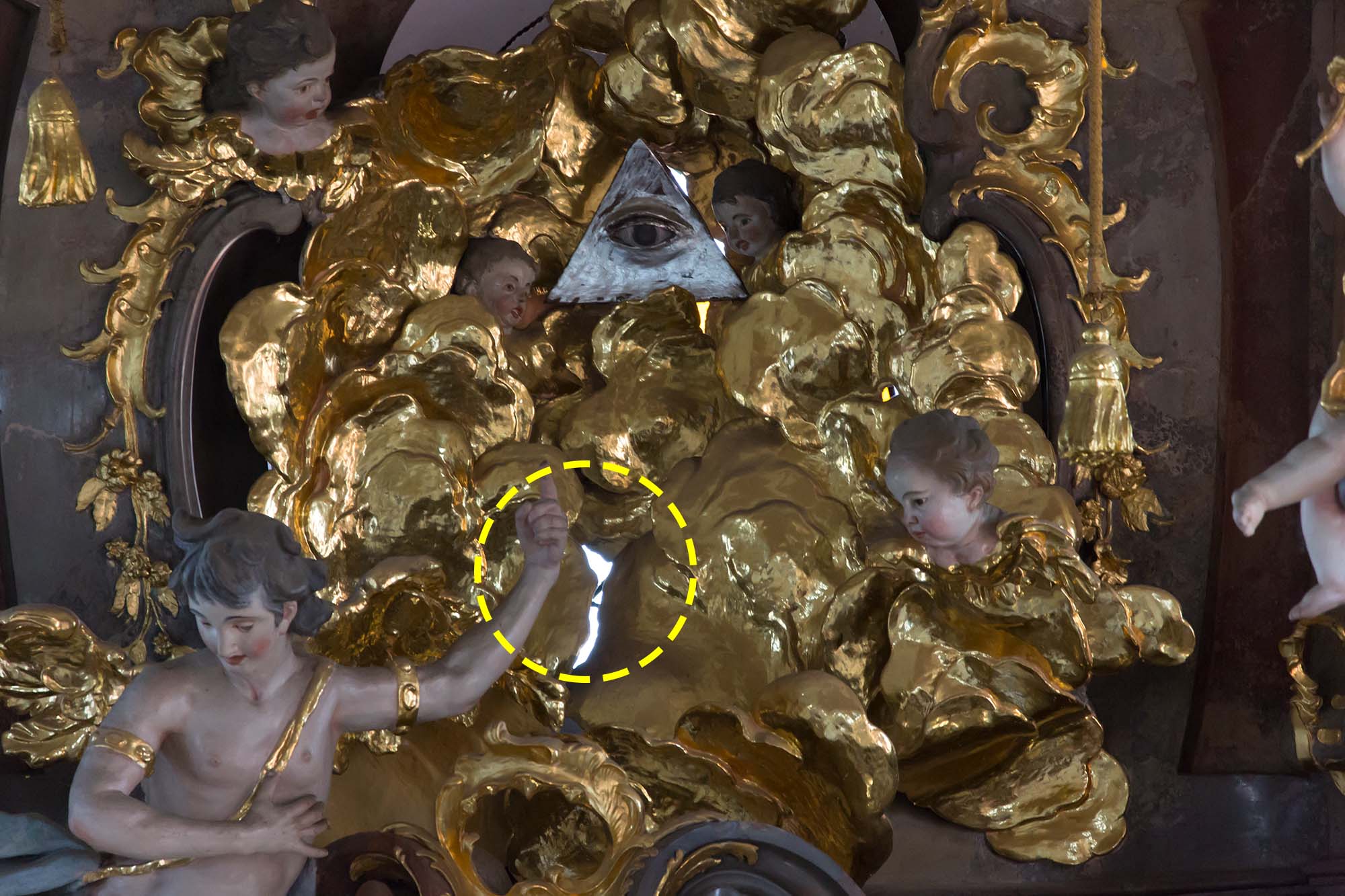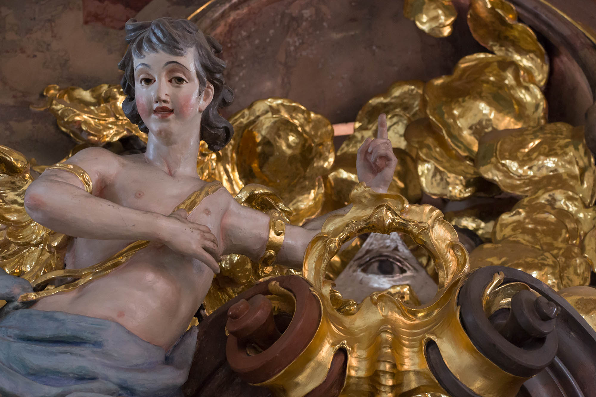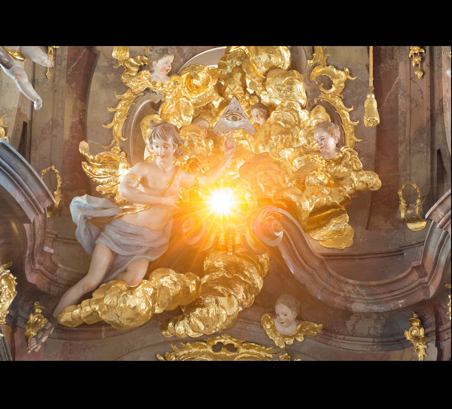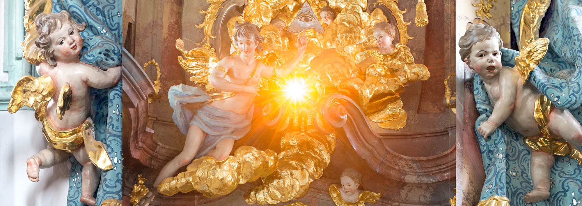 Dieser einfache Stuckrahmen, auf den der Erzengel Gabriel am Hochaltar so eindrucksvoll mit seinem unübersehbaren Fingerzeig und seinem bezeichnenden Lächeln hinweist,